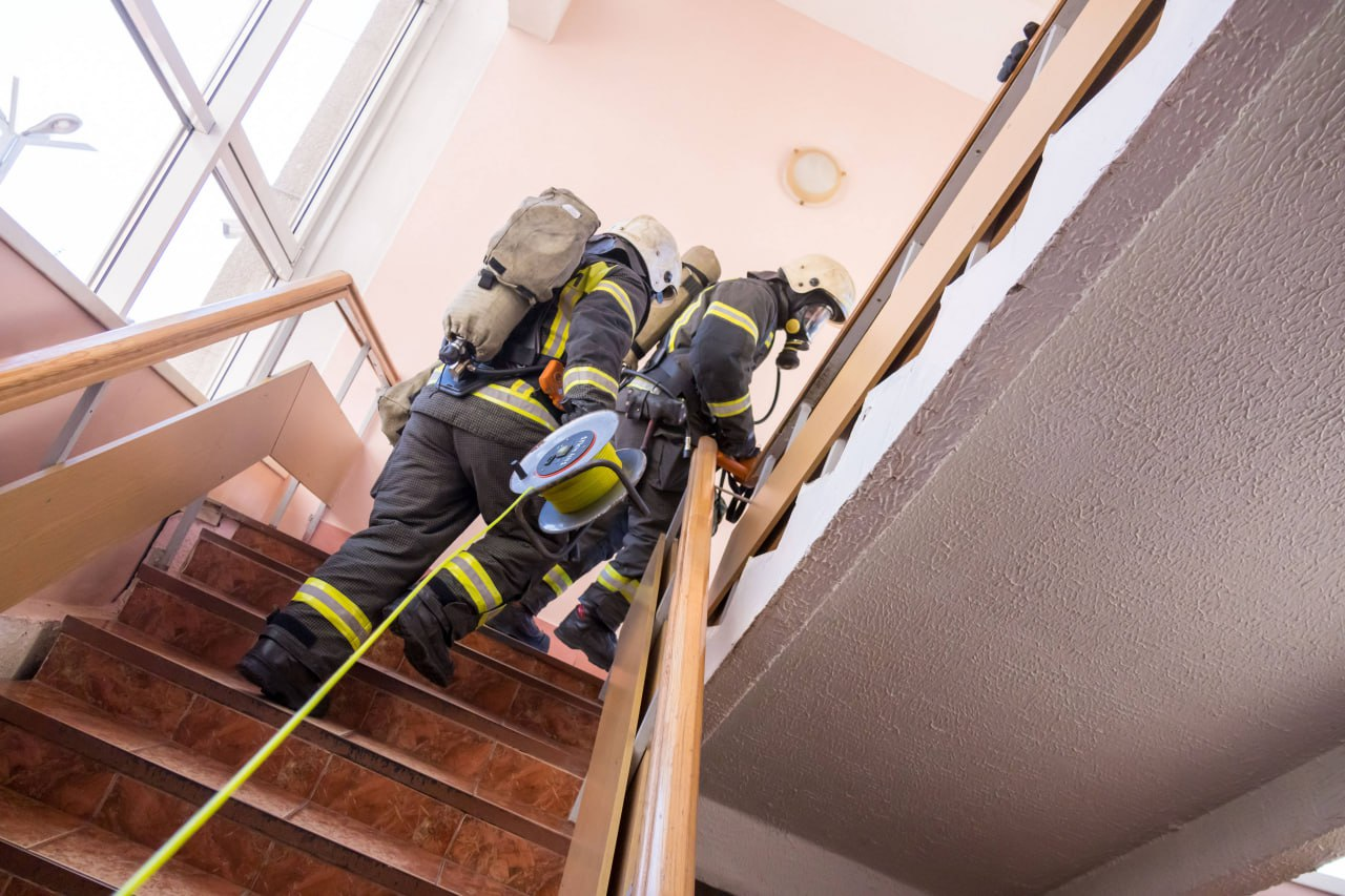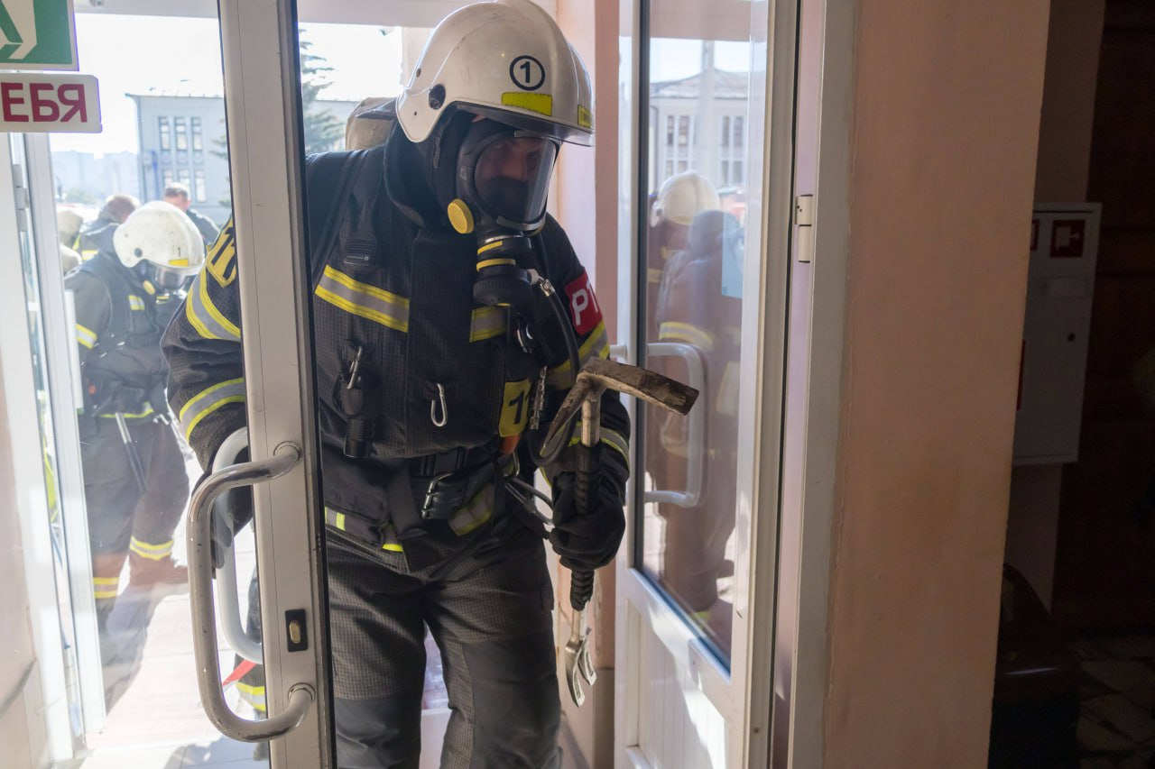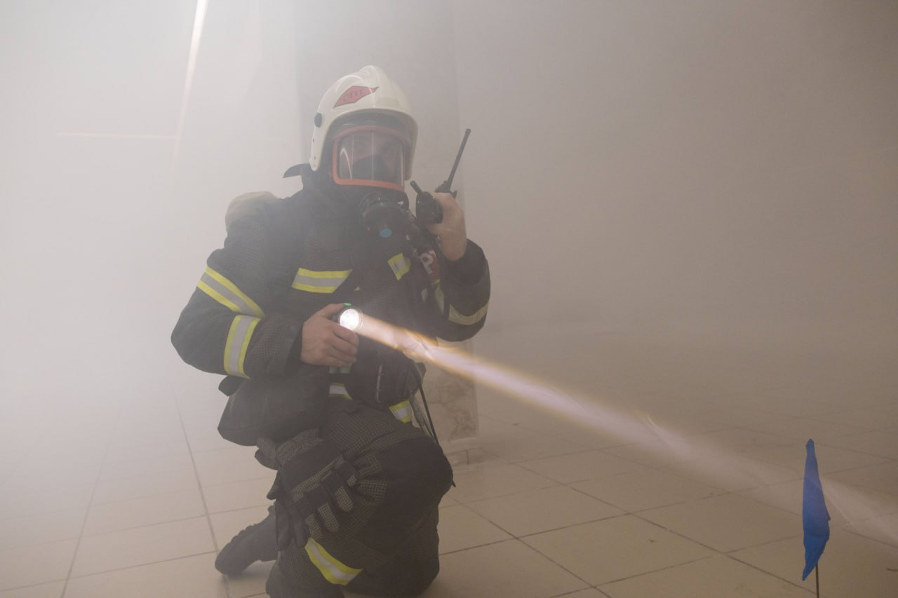 Руководитель тушения пожара Максим Сунцов рассказал, что учения были спасатели выполняли в условиях полной задымленности, нулевой видимости и дополнительным весом в 30 килограмм оборудования.