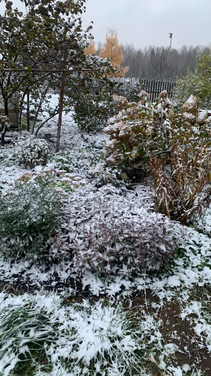 Снимками заснеженных елей, яблонь и кустов поделились жители Омутнинска. Также в этом районе сформировался временный снежный покров на участках, побелив грядки и теплицы.