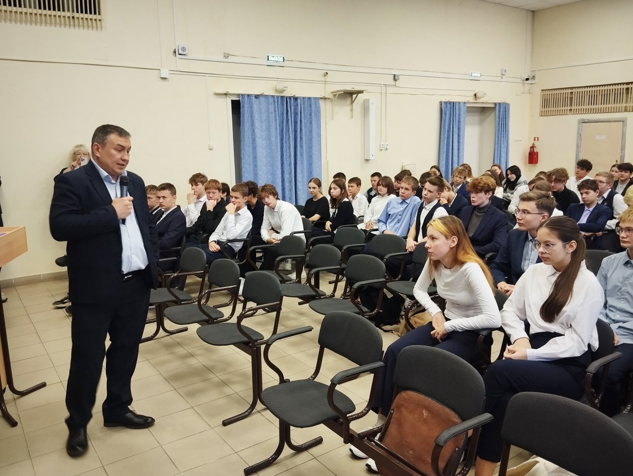 Руководитель пресс-службы Кировского филиала Олег Прохоренко познакомил ребят в год 80-летия Победы в Великой Отечественной войне с интересными фактами и историей героического труда энергетиков и строительства в тяжелейших условиях войны Кирово-Чепецкой ТЭЦ. Эта станция, сегодня известная как Кировская ТЭЦ-3, дала начало новому городу в устье реки Чепцы. Ребята внимательно слушали воспоминания ветеранов электростанции, которые подростками пришли на стройку, работали на торфоразработках, топливоподаче, в электроцехе ТЭЦ.