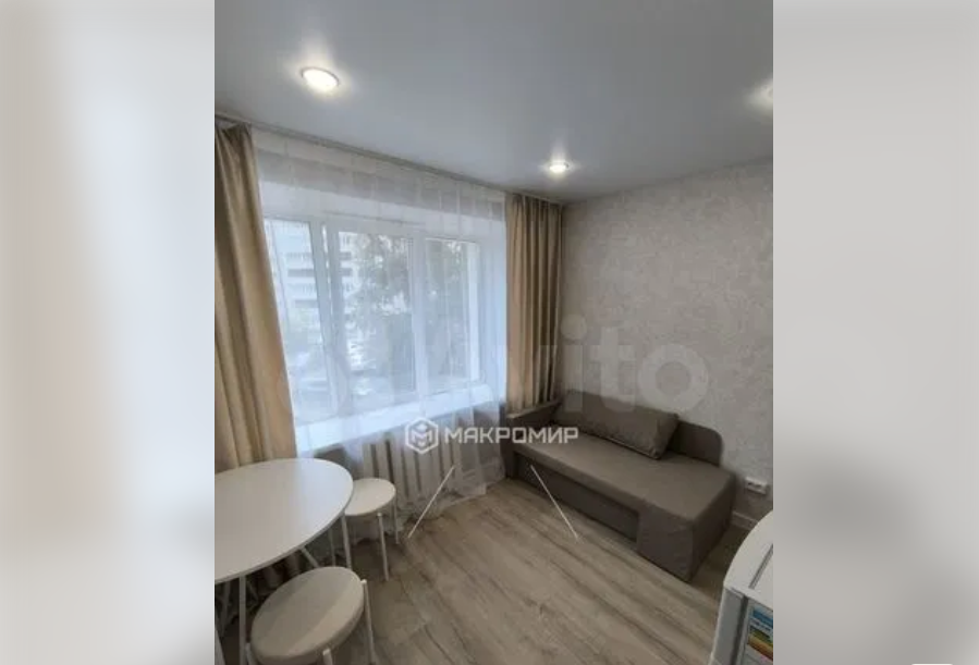 Статус — жилое помещение. Подходит под материнский капитал и наличный расчет. Продавец добавил, что возможна покупка с мебелью и техникой. В наличии две студии, разделенные стеной.