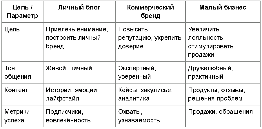 Сравнение подходов: личный блогер, бренд и бизнес