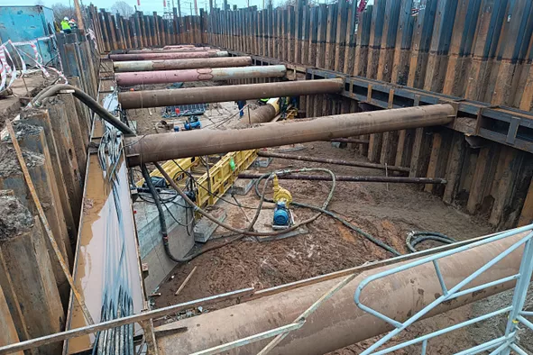 В субботу, 1 ноября, власти Кировской области сообщили, что на стройплощадке в Нововятске началось обустройство защитного экрана тоннеля. Иными словами, подрядчик занялся созданием каркаса сооружения. Работы проводятся посредством введения микротоннелепроходческого комплекса в грунт.