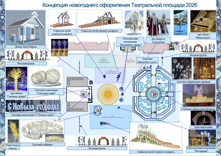 В документации к контракту говорится, что к Новому году планируется украсить Театральную площадь и улицу Спасскую на участке от улицы Ленина до улицы Никитской. На главной площади города появятся несколько входных групп, три горки, новогодняя ель, световой лабиринт, несколько арт-объектов и многое другое.