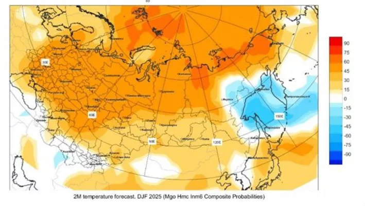 Повышенная вероятность положительной температурной аномалии наблюдается на всей территории европейской части России. Хорошие шансы застать типичную для своих мест зиму имеются лишь у жителей трех дальневосточных регионов: Камчатки, Магаданской области и Хабаровского края.
