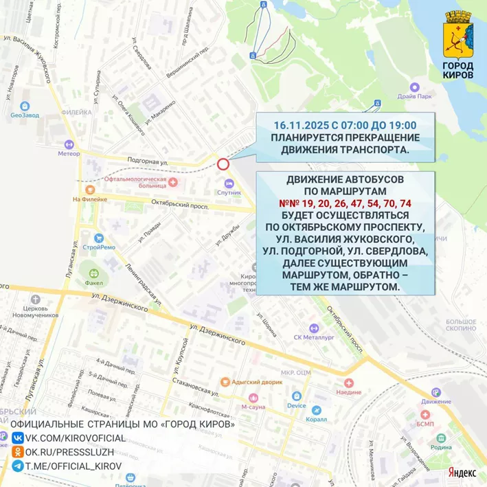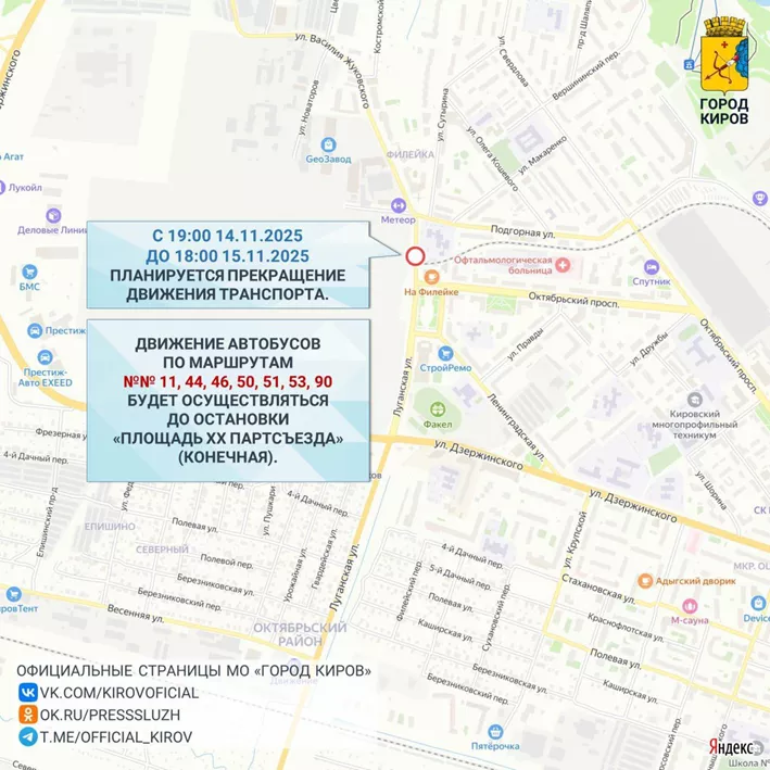Мэрия Кирова предупреждает о перекрытии двух переездов и изменении 14 маршрутов