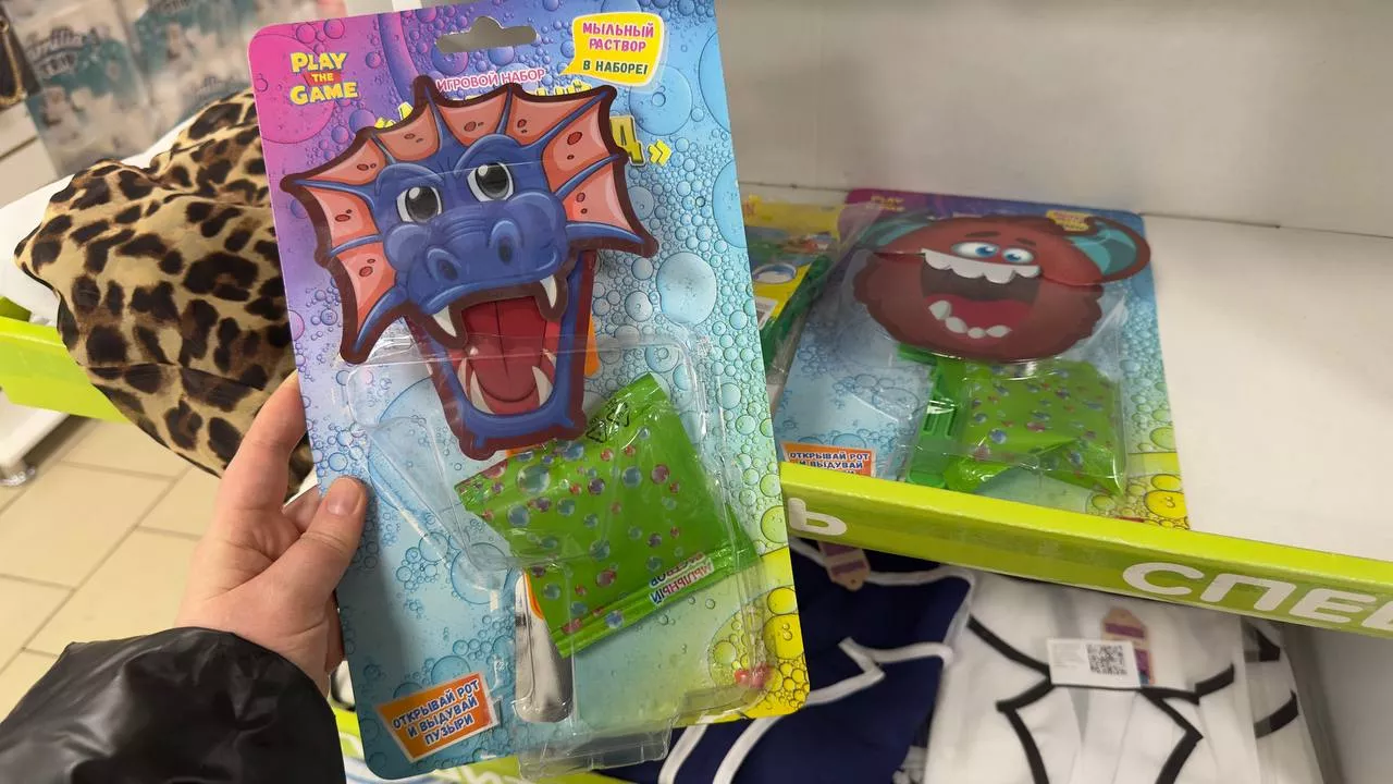 Среди новинок — маска дракона с мыльными пузырями: ребёнок сможет почувствовать себя настоящим мифическим существом, выпуская разноцветные пузыри. Отличный вариант для весёлых прогулок и детских праздников. Ценника в магазине еще не было, но похожие на сайте стоят 35 рублей.