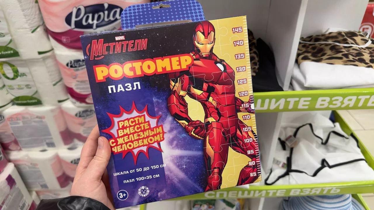 Любителям супергероев приглянётся ростомер‑пазл «Мстители»: он не только украсит комнату, но и поможет отслеживать рост ребёнка. Собирание пазла заодно потренирует логику и мелкую моторику. Такие же пазлы есть с Эльзой, Олафом, Халком, Человеком Пауком, Рапунцель, Ариэль, 3 кота. Цена: 35 рублей.