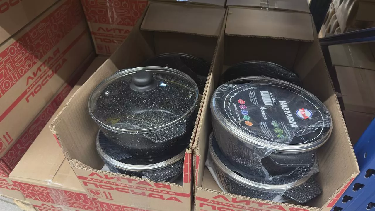 Первым моим открытием стала сковорода из литого алюминия с антипригарным покрытием. Лёгкая, удобная, с равномерным прогревом по всей поверхности. Цена дешевле, чем во многих магазинах.