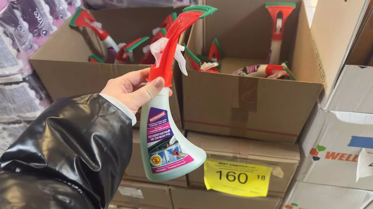Среди бытовой химии моё внимание привлёк спрей для мытья окон с водосгоном. Удобно, что руками ничего трогать не надо.