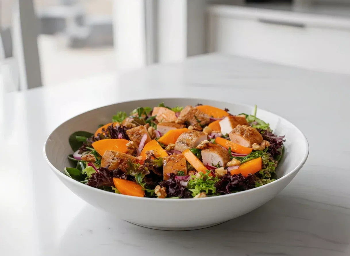 Салат с копченой грудкой и хурмой
