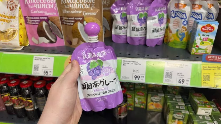А питьевое желе со вкусом винограда оказалось самым веселым — его не столько пьют, сколько едят, и это идеально для перекуса.