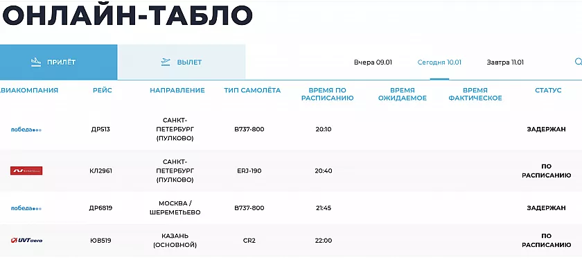 Схожая ситуация возникла и с рейсами в Москву. Рейс DP6819, следовавший из Шереметьево в Киров, был задержан и должен был прибыть в 21:45. Обратный рейс DP6820, который по расписанию должен был вылететь в 22:10, теперь ожидается в 22:25.