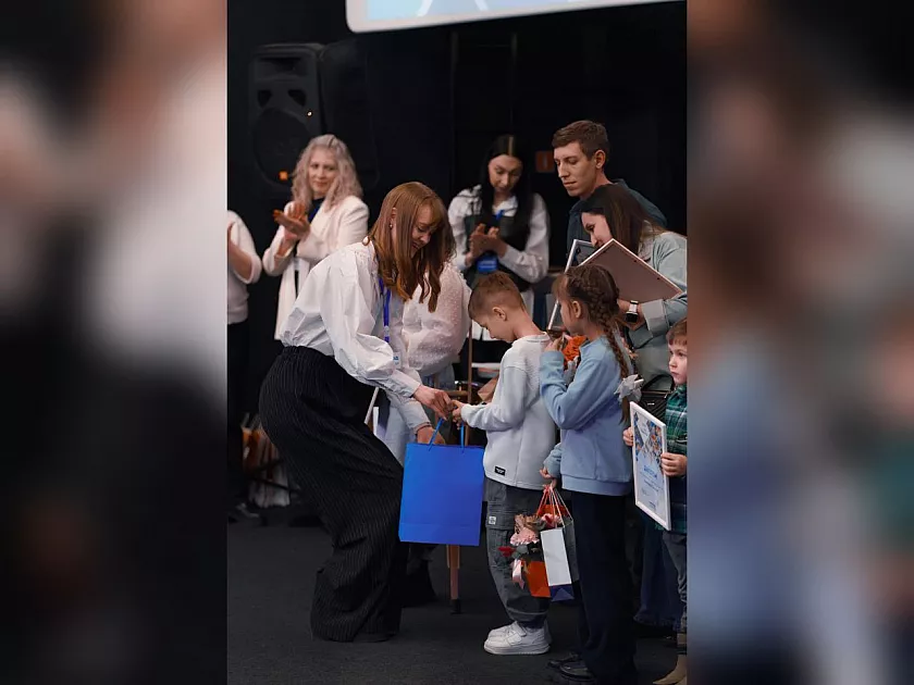 Михаил Двоеглазов, спасший и выходивший парализованного пса, угодившего в борщевик, порадовал подарками самых юных участников - победительницу Сашу Еремину и Данила Рудыка.