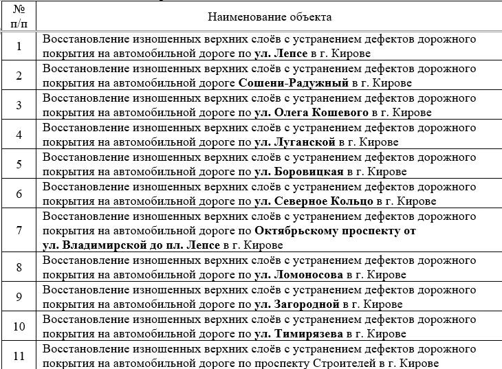 В Кирове планируется обновление 11 дорожных объектов, на что выделено 556 миллионов рублей. Сведения об этом распространили на портале Госзакупок.