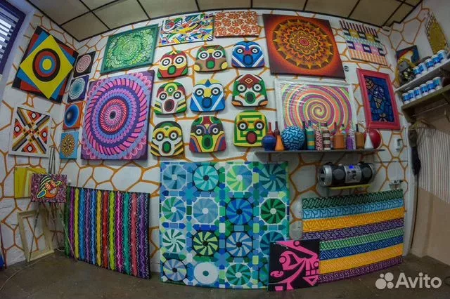 Как отметил автор публикации, указанный стиль характеризуется использованием геометрических форм, узоров и цветовых контрастов, которые создают оптические иллюзии и зрительные эффекты. Всего на продажу выставлено более 15 произведений искусства.