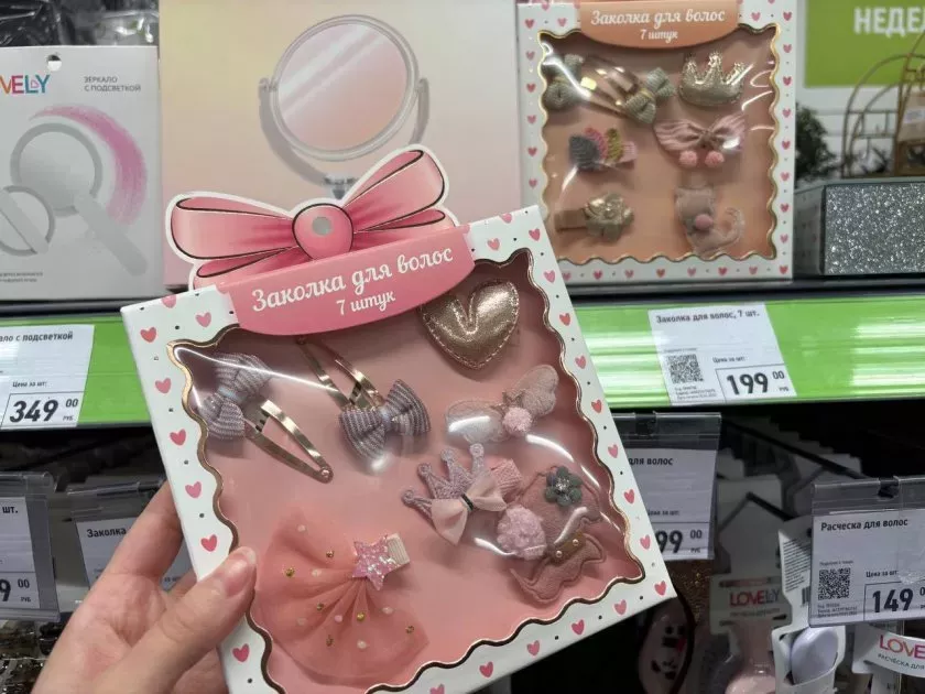 Дальше нашла набор заколок. Сразу вспомнила, что у племянницы скоро день рождения. Там семь штук в упаковке: и с короной, и с бантиками, и обычные, на каждый день. Для маленькой принцессы самое то. Качество нормальное, заколки не хлипкие, держаться будут.