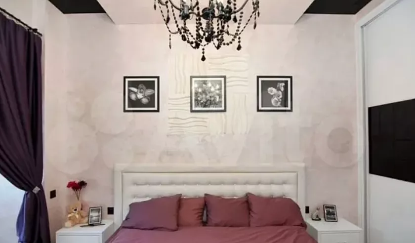 Особое внимание в описании уделено внутреннему обустройству. Спальня для взрослых с большой кроватью, зоной для макияжа и большим шкафом-купе. Есть детская комната для мальчиков и комната для девочки. Также в квартире имеются несколько гардеробных и санузлов, кондиционер и даже отдельная игровая комната.