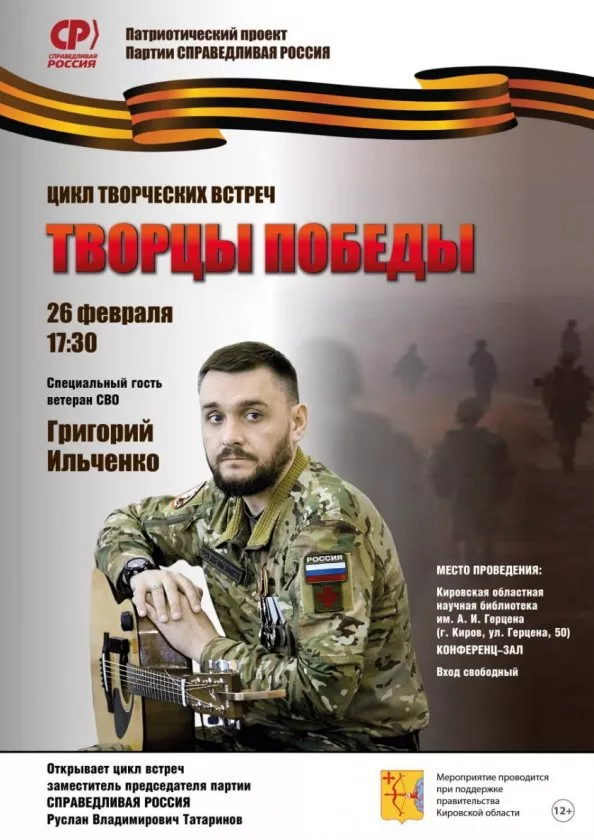 "Справедливая Россия" приглашает всех гостей и жителей Кирова на первую творческую встречу "Творцы Победы"