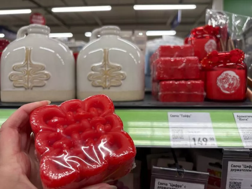 Дальше пошла свеча "Тайфу". Красная, яркая, прям просится, чтобы ее зажгли вечером. Красный цвет в интерьере - штука коварная, но здесь он смотрится как дорогой акцент. Поставишь на полку - и сразу комната играет по-новому. Я даже представила, как она будет мерцать в темноте.