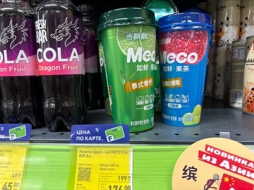 На следующей полке обнаружился фруктовый чай. Ассортимент богатый: манго с гуавой, лайм, гранат, личи, маракуйя. В отзывах мнения расходятся. Кто-то пишет, что это скорее компот, чем чай, и сладость чувствуется без сахара. Другие хвалят за яркий вкус и необычные сочетания. Цена вопроса - 174 рубля. За эти деньги можно устроить дегустацию и решить, что лично вам ближе.