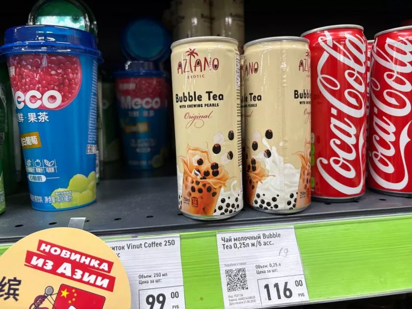 Рядом стоял молочный бабл-ти. Вариант для тех, кто любит азиатские напитки, но не хочет заморачиваться с приготовлением дома. Просто залил водой или молоком - и готово. Вкус насыщенный, сладкий, с нотками карамели и фруктов.