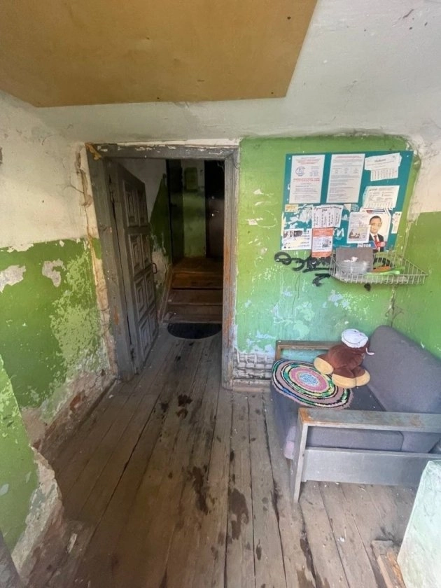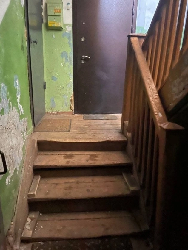 Потом упала деревянная балка в подъезде. К счастью, никто не пострадал. В подъездах проваливается хлипкий деревянный пол.