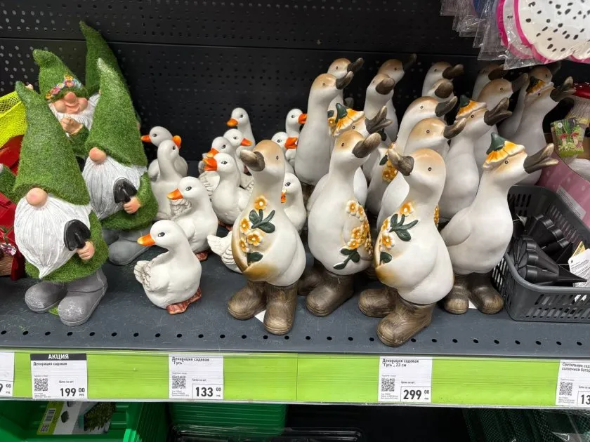 Первое, на что я наткнулась, - семейство гусей. Такие милые, есть большие и поменьше. Я давно хотела поставить в саду какую-нибудь фигурку, но цены в садовых центрах кусаются. А тут вполне бюджетно и смотрится очень душевно.