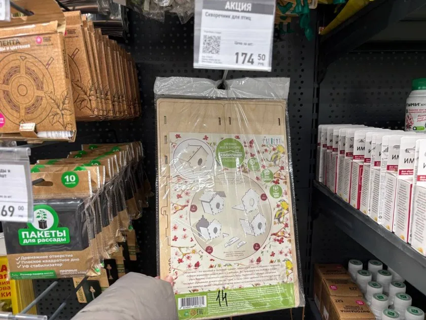 Согласитесь, дети через час после приезда на дачу начинают ныть, что им скучно. Телефон надоел, качели тоже. И тут я увидела набор для сборки скворечника за 175 рублей. Это же гениально! Во-первых, ребенок занят делом, во-вторых, потом будет с гордостью показывать бабушке, какой он молодец. В наборе, судя по коробке, есть все необходимое, даже краски.