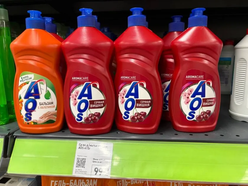 А вот это я покупаю уже не в первый раз. "Аос" с ароматом сочной вишни - просто бомба. Никогда не думала, что буду с удовольствием мыть посуду, но этот запах реально поднимает настроение. Пена хорошая, смывается легко, руки не сушит. В общем, для меня это фаворит. Взяла без раздумий.