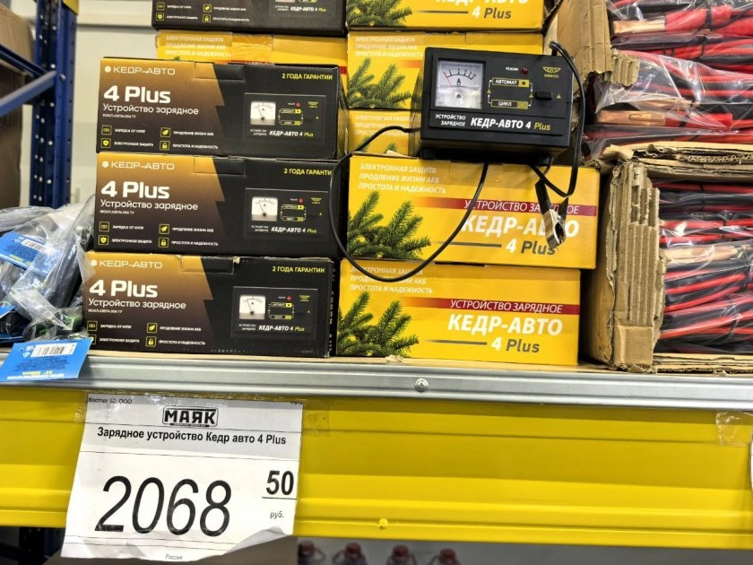 Тут меня ждал сюрприз. Увидела автомобильное зарядное устройство «Кедр» за 2068 рублей. Зимой аккумулятор частенько подводит, особенно если машина стоит несколько дней на морозе. Такое устройство — палочка-выручалочка. Подключил к сети, поставил на зарядку, и утром аккумулятор как новенький. Не надо «прикуривать» от соседей и убивать генератор.