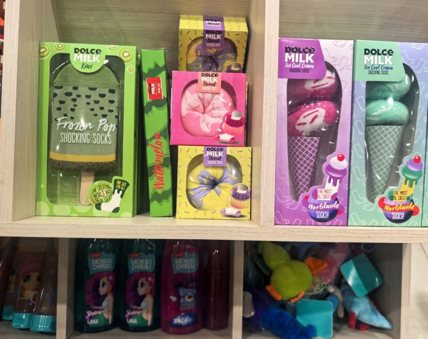 Самый неожиданный пункт в списке покупок - носки в оригинальных коробочках. Не просто целлофановый пакетик, а плотная красивая упаковка, которую не стыдно подарить. Сами носки мягкие, приятные к телу, с забавными принтами. Автор признается: купила их скорее из-за упаковки, но теперь носит с удовольствием. Идеальный вариант для небольшого подарка подруге или коллеге.