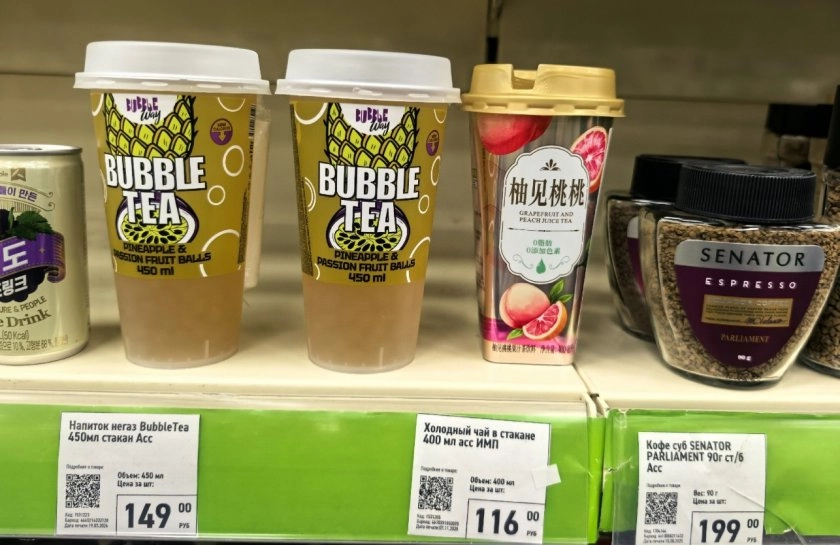 Покупательница поделилась своей добычей. Говорит, забежала на пять минут, а вышла через полчаса с целым пакетом. Началось все с банального холодного чая, но не простого, а BUBBLE TEA в стакане. Это та самая история про "бабл ти" за 116 рублей. Внешне выглядит почти как в модных кофейнях. По вкусу - нормальный освежающий напиток, без химического привкуса. Не шедевр, но за такие копейки - самое то.