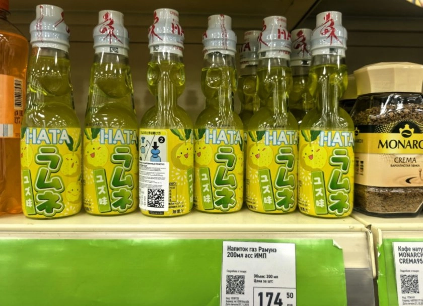 Следующим в корзину отправился японский лимонад "Рамунэ". Это уже не просто напиток, а целый квест. Бутылка закрыта стеклянной пробкой, которую надо вдавить внутрь. У многих с первого раза не получается, но в этом и кайф. Вкус - классическая цитрусовая шипучка с легкой кислинкой. Освежает отлично, особенно в душном помещении. И выглядит необычно - можно потом банку использовать как вазу или подставку.