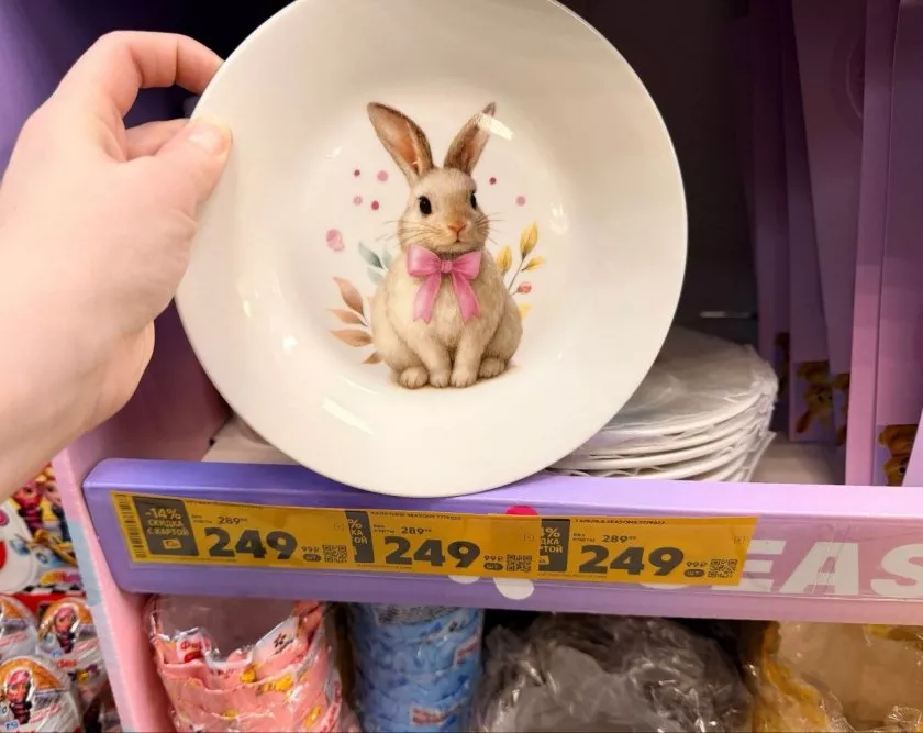 Первым делом автор обратила внимание на посуду. В этом году сеть обновила линейку керамики. Тарелки и кружки с пасхальными зайцами — такие милые, что не купить невозможно. Цены стартуют от 249 рублей, выглядят очень достойно. Ксения взяла парочку — сервировать праздничный стол.