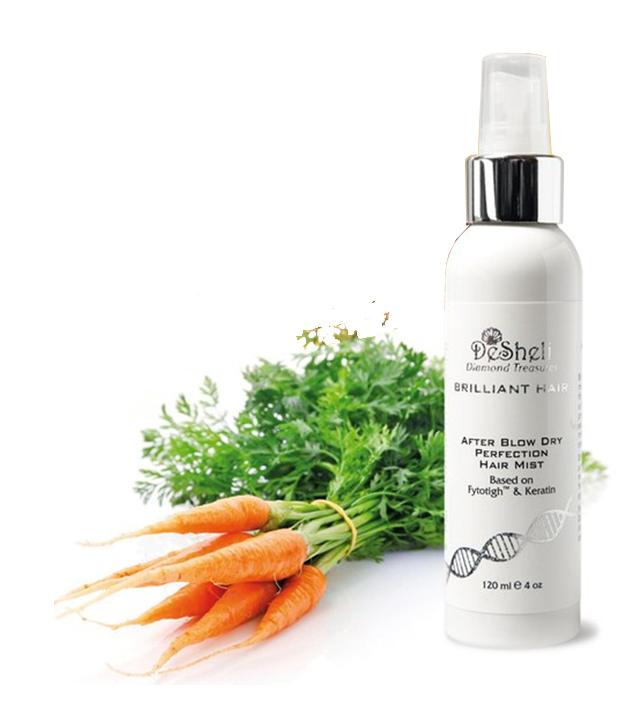 - Легкий спрей для волос после укладки After Blow Dry Perfection Hair Mist из линейки Diamond Treasures Brilliant Hair включает в свой состав масло семян моркови, масло семян льна, кератин, гидролизированный шелк, это помогает сохранять прическу в течение всего дня, а также защищает волосы от воздействия негативных факторов окружающей среды и от статического электричества.