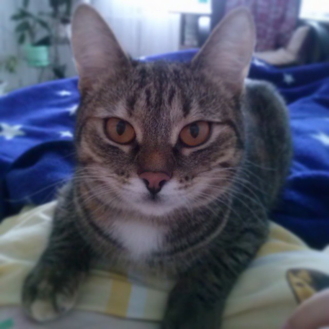 - Так я просыпаюсь. Авдотья приходит и ложится на меня.Каждое моё утро начинается с поглаживания этой мордашки. Потом наша киска становится дикой,а каждая попытка прикоснуться превращается в охоту за руками, - поделилась olyaboom своим началом дня.