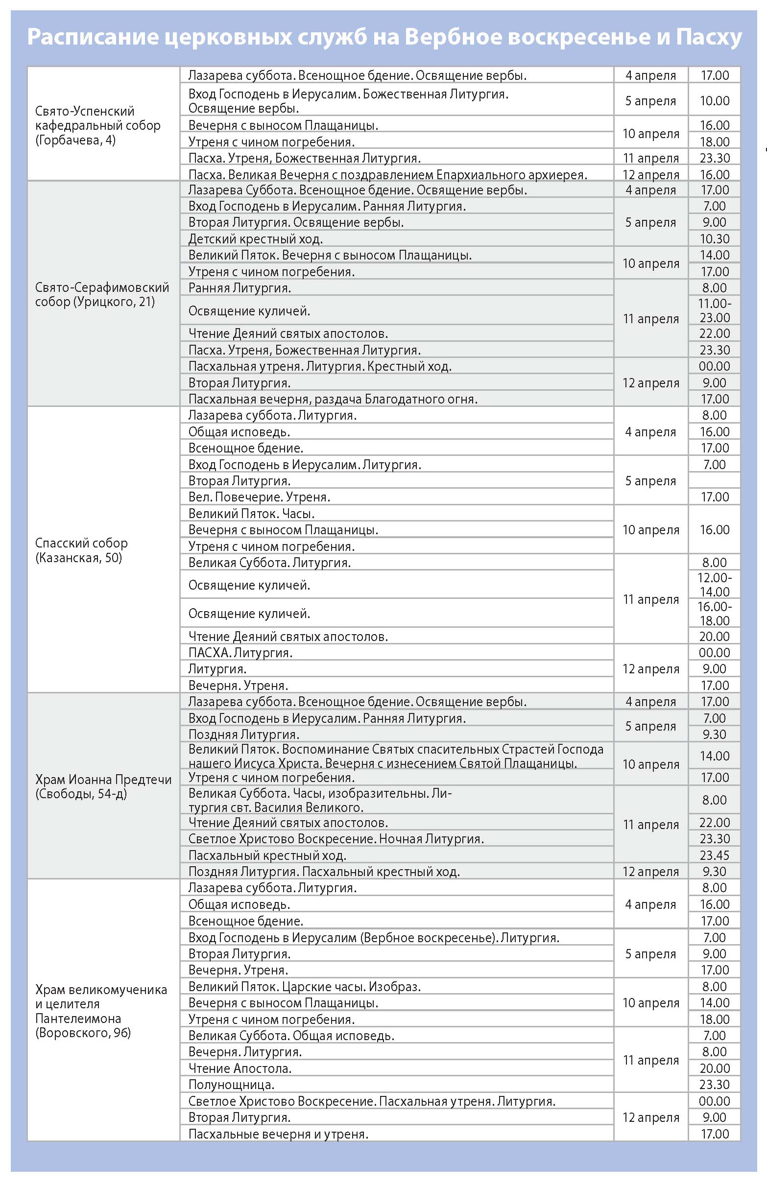 Мы публикуем расписание пасхальных богослужений