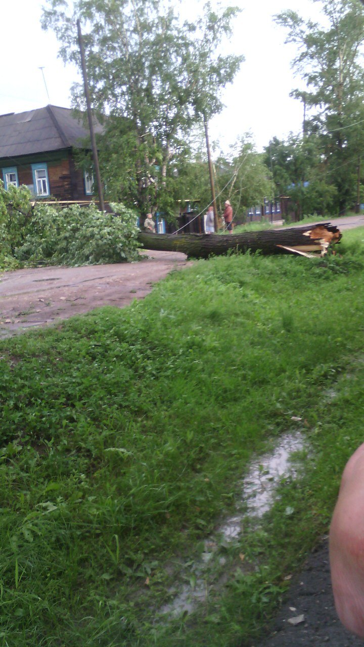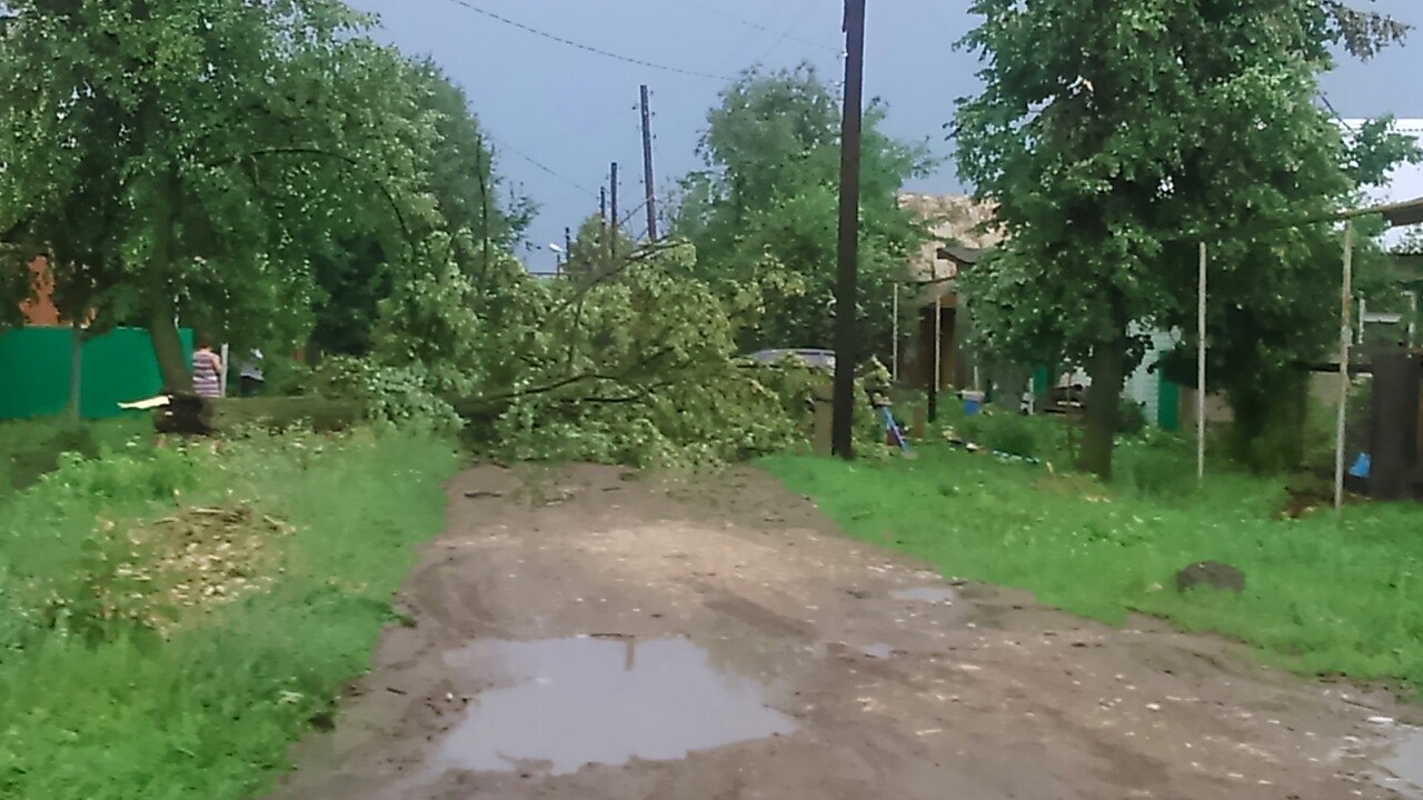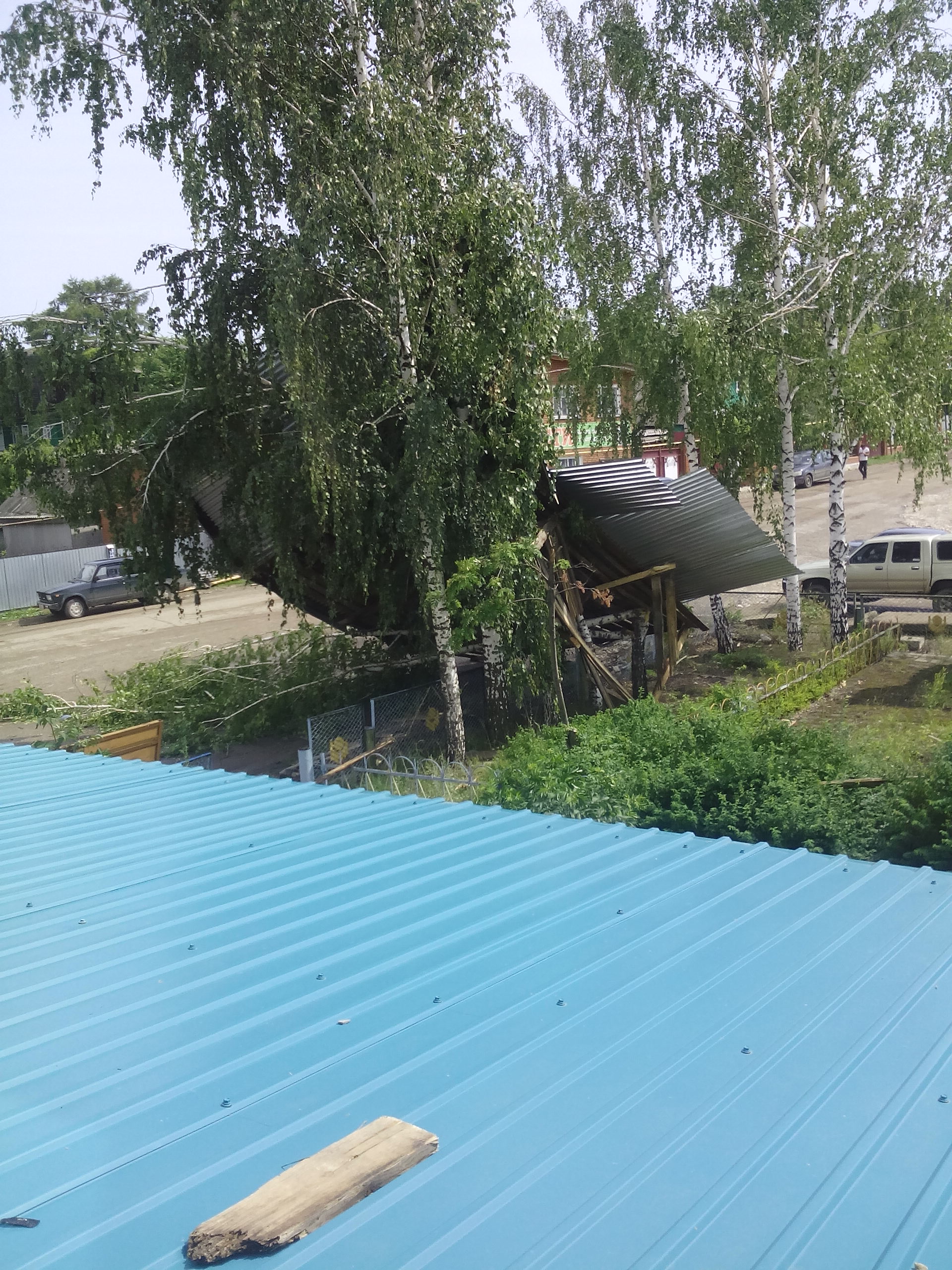 - Из-за сильного ветра сорвало профнастил вместе с обрешеткой у некоторых зданий, повалены деревья, произошли обрывы электросетей.