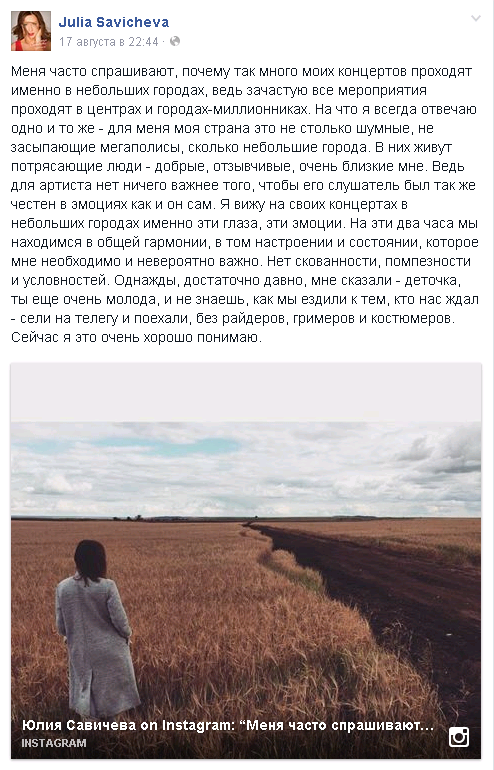 Вот, что опубликовала певица в "Фейсбук":