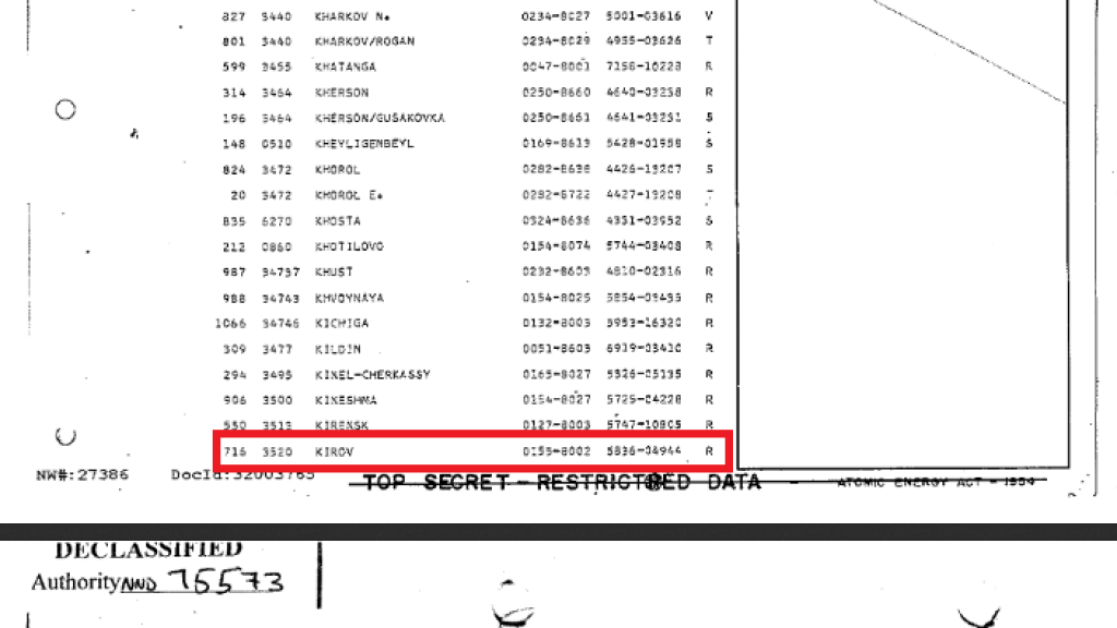 Национальное управление архивов и документации США рассекретило список потенциальных целей, по которым Вашингтон планировал нанести ядерные удары в 1959 году в случае войны с Советским Союзом. В списке городов, которые могли подвергнуться атаке, есть и Киров. Подробности в нашем материале.