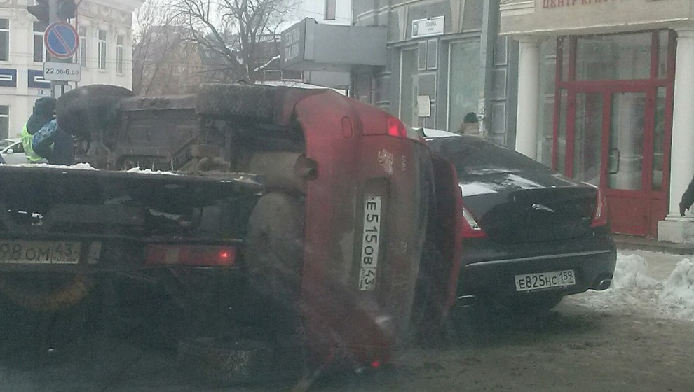 В среду, 10 февраля 2016 года, в Кирове на перекрестке улиц Герцена и Ленина в 13.10 произошло необычное ДТП. Автоэвакуатор уронил «Ладу Калину» на припаркованный Jaguar. В ГИБДД по Кировской области появилась официальная версия аварии. Подробности здесь.