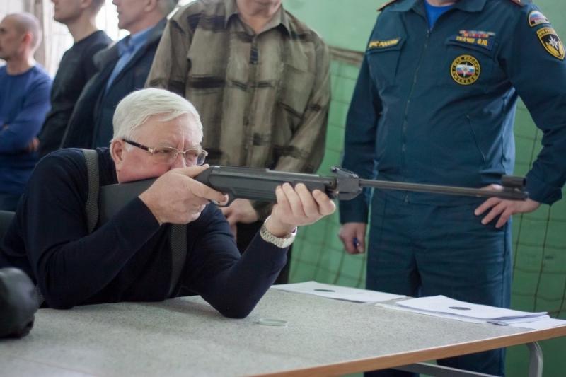 Экс-начальник Центра управления силами ГПС Владимир Гвоздев стал самым метким стрелком, набрав пятью выстрелами 41 балл.