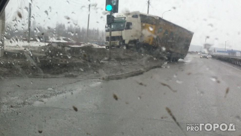Разбитые покрышки, фура, слетевшая в столб: в Кирове с приходом весны растаял асфальт