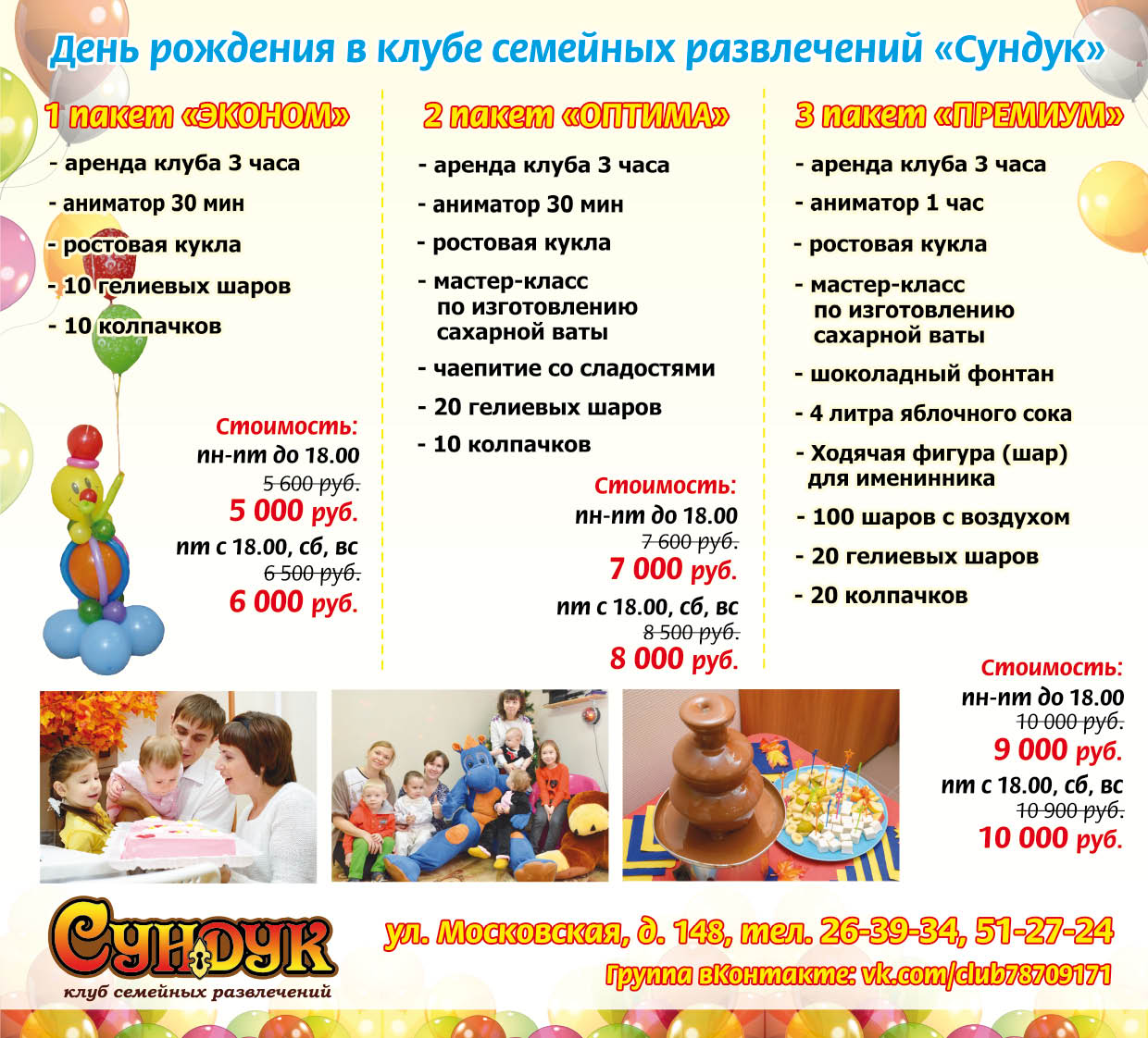 Приглашаем отпраздновать Ваш праздник в нашем клубе семейных развлечений "Сундук"!
