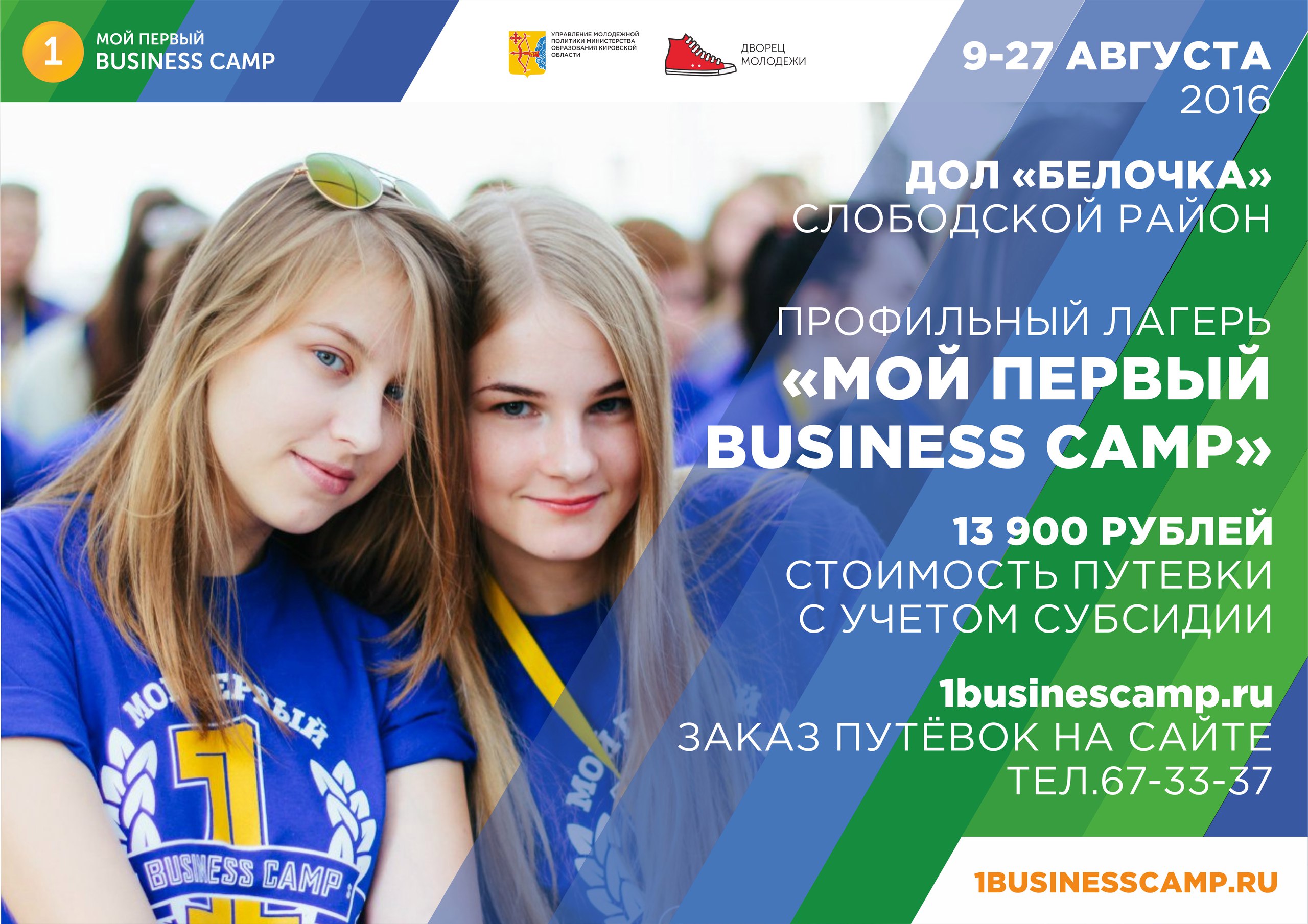 Стоимость путевки и условия проживания. Программа «Мой первый Business Camp» пройдет на базе детского оздоровительного лагеря «Белочка» в Слободском районе село Ильинское. Для комфортного пребывания и полноценного отдыха здесь создана отличная инфраструктура. Стоимость путевки с учетом субсидии — 13900 рублей. Скачать пакет документов для ее оформления и заказать путевку можно на официальном сайте лагеря 1businesscamp.ru