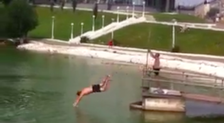 На кадрах видео, которое прислали к нам в редакцию, видно, что молодые люди ныряли в воду по очереди. Перед купанием кировчане разделись, одежду они бросили прямо перед железным ограждением. Видео вот здесь.