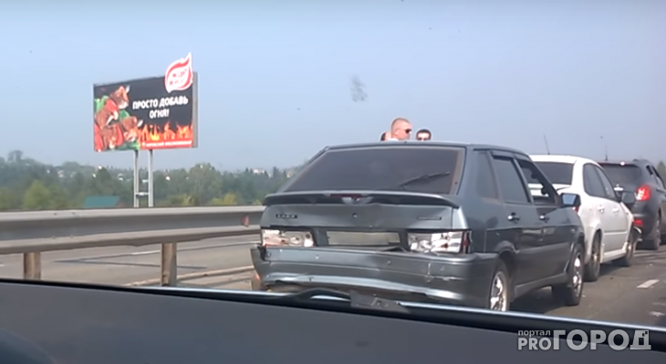 В субботу, 23 июля 2016 года, в Кирове перед Новым мостом столкнулись четыре машины, об этом сообщил постоянный читатель Иван Котельников.