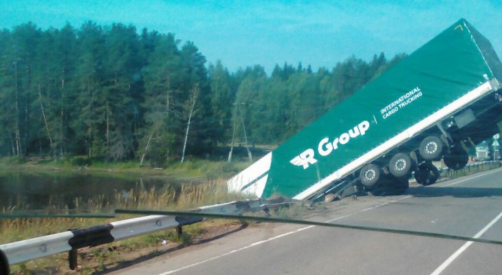 Во вторник, 23 августа 2016 года, на 90 километре автодороги Киров - Пермь в Белохолуницком районе грузовик Scania съехал с моста, об этом сообщили в ГИБДД по Кировской области.