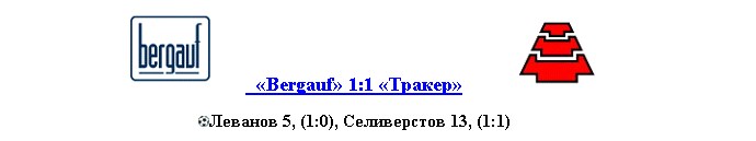 Отступать некуда, впереди кубки. С такими мыслями коллективы вышли на поле и показали интереснейшую игру, на приличной скорости, с хорошей динамикой, обоюдными атаками. Первый гол не заставил себя долго ждать, Леванов Максим оказался расторопнее всех во вратарской, и после отскока от вратаря, первым добил мяч в ворота. «Тракер» отыгрался в течение 10 минут усилиями Селиверстова Юрия, который получив пас с фланга, мощно пробил под левую штангу, вратарь был бессилен. После перерыва игра продолжилась в том же ключе, команды обстучали все штанги, на двоих их было четыре, но мяч закатить в ворота, так ни кто и не смог. Боевая ничья 1:1.