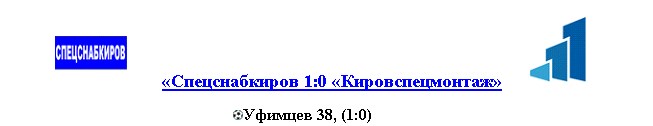 Коллектив «Спецснабкирова» с каждой игрой становятся более собранной и мастеровитой командой. Номинальные хозяева играли лучше, еще в первом тайме они могли открыть счет, но гостей несколько раз выручал каркас ворот. Во тором тайме гол всё-таки случился, сработала связка Уфимцев – Елсуков, где первый с передачи второго протолкнул сферу мимо вратаря, принеся своей команде первую победу в чемпионате.